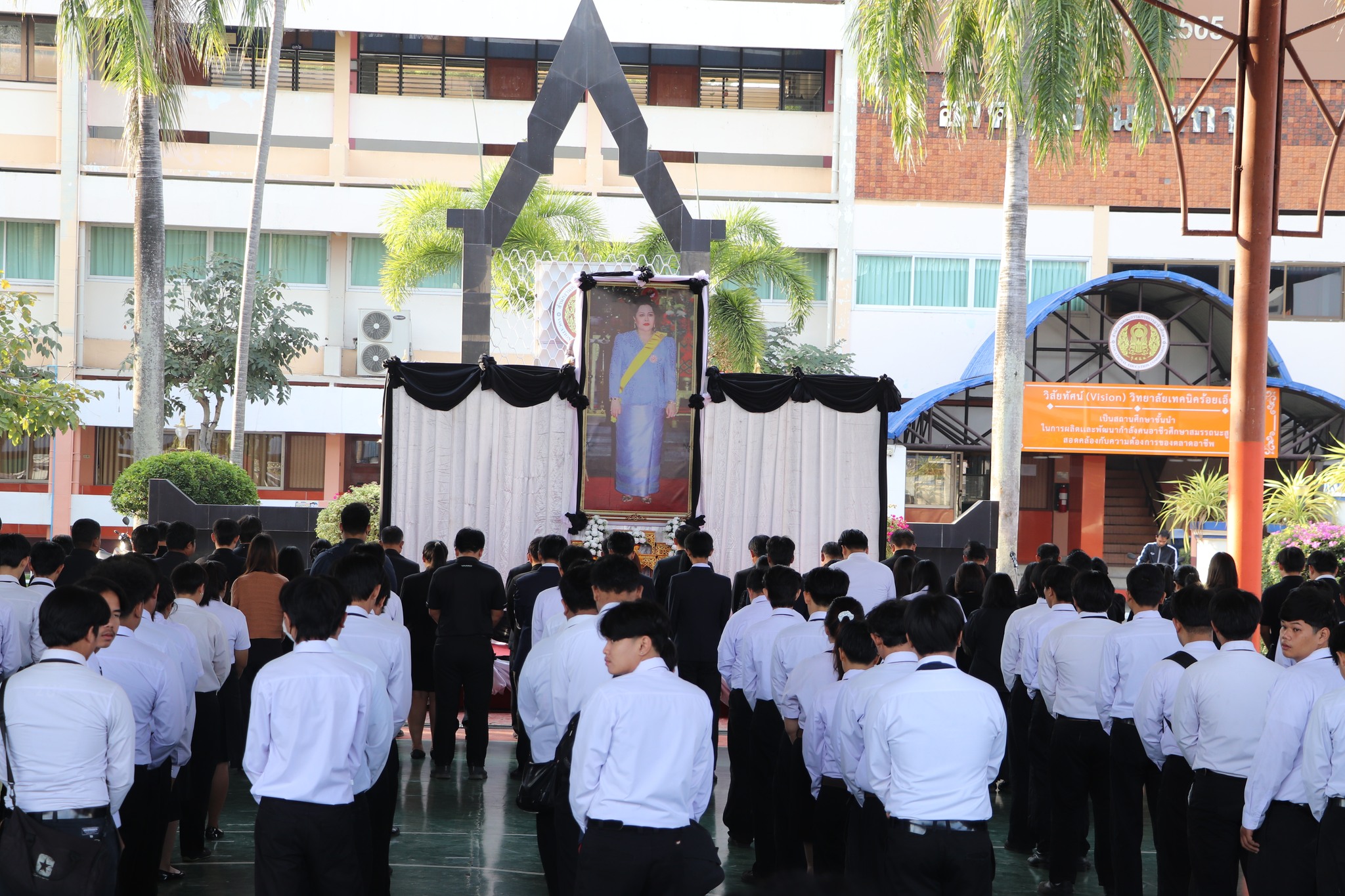 นายสิทธิรัตน์ มิรัตนไพร รองผู้อำนวยการฝ่ายบริหารทรัพยากร ประธานในพิธี พร้อมด้วยนายทวีเกียรติ จันทะ รองผู้อำนวยการฝ่ายวิชาการ ข้าราชการครู คณะครู บุคลากรทางการ และนักเรียนนักศึกษา วิทยาลัยเทคนิคร้อยเอ็ด เข้าร่วมกิจกรรม “รวมพลังแห่งความภักดี” ในวาระสตมวาร ครบ 100 วัน แห่งการสวรรคต สมเด็จพระนางเจ้าสิริกิติ์ พระบรมราชินีนาถ พระบรมราชชนนีพันปีหลวง และร่วมกิจกรรมการถวายความอาลัยและจิตอาสาบำเพ็ญสาธารณะประโยชน์ เพื่อน้อมรำลึกในพระมหากรุณาธิคุณ อันหาที่สุดมิได้ ซึ่งกิจกรรมในครั้งนี้จัดขึ้น ณ วิทยาลัยเทคนิคร้อยเอ็ด